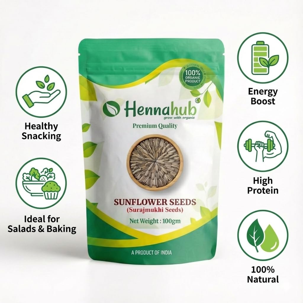 Hennahub Sunflower Seeds are premium-grade raw seeds loaded with Vitamin E, plant protein, healthy fats, fibre and essential minerals. These crunchy edible seeds make a delicious and nutritious addition to your daily diet.