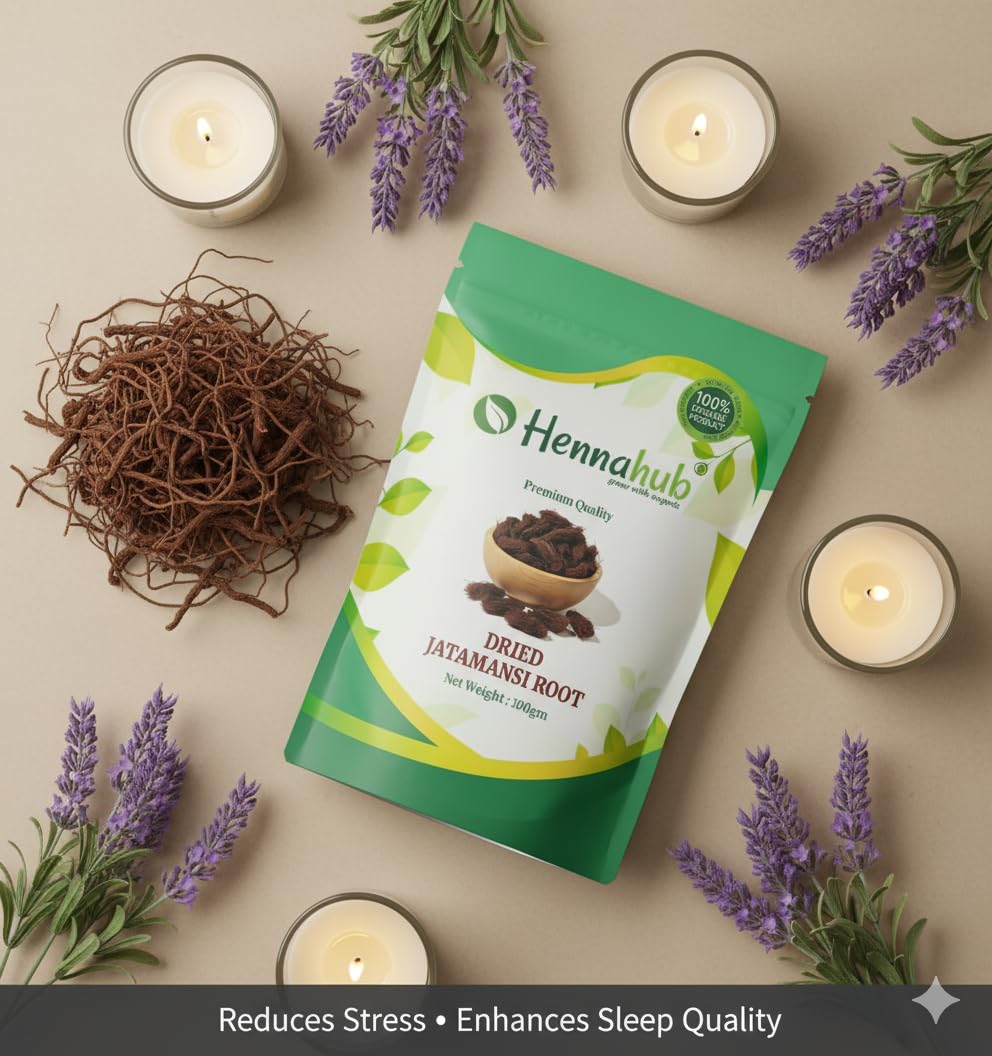 Hennahub Dried Jatamansi Root Raw 100gm Pack brings you pure, natural Nardostachys jatamansi (Spikenard) — a sacred Ayurvedic herb revered for its calming, rejuvenating, and hair-strengthening properties. Naturally sun-dried and hygienically packed, it helps balance mind, body, and hair health.