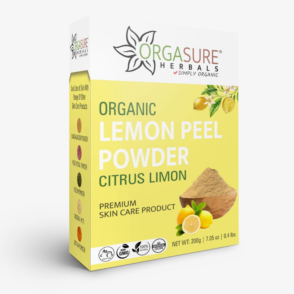 Orgasure Lemon Peel Powder is rich in vitamin C and antioxidants, brightening the complexion and reducing dark spots. It gently exfoliates, removing dead skin cells, and controls excess oil. Known for its refreshing properties, it leaves skin smooth, fresh, and glowing.